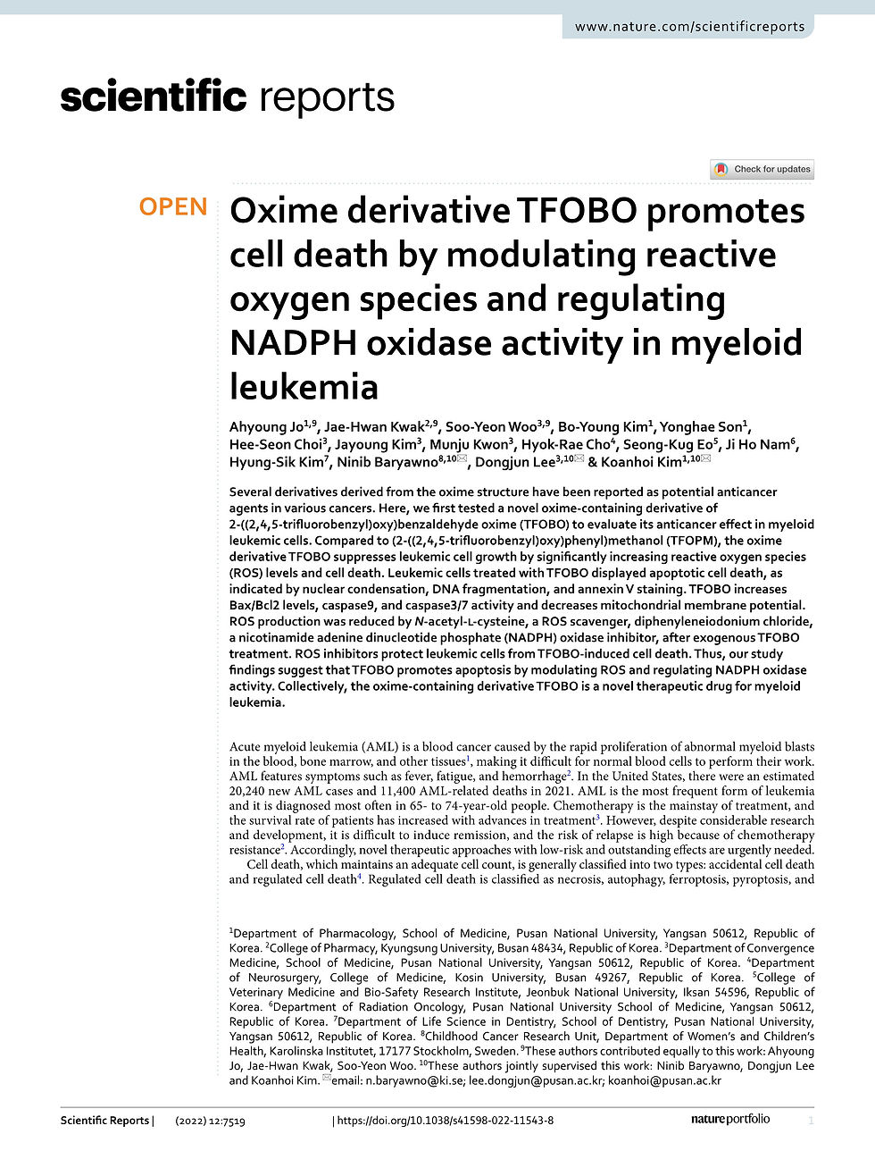 Oxime derivative TFOBO promotes cell death by modulating reactive oxygen species and regulating NADPAdmin2022년 5월 7일1분 분량최종 수정일: 2022년 7월 12일Sci Rep. 2022 May 7;12(1):7519. doi: 10.1038/s41598-022-11543-8.